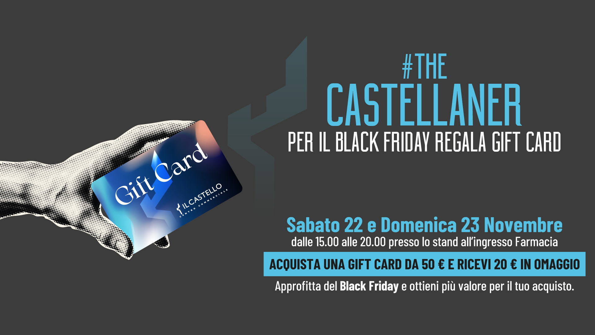 acquista una Gift Card da 50€ de Il Castello e ricevi subito 20€ extra in omaggio. Con 70€ a disposizione, puoi fare ancora più shopping e coccolare te e chi ami!